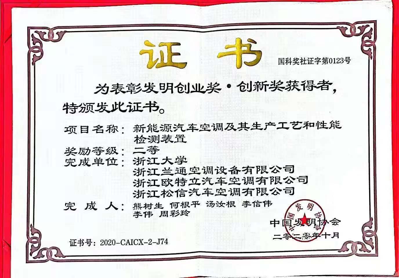 浙江歐特立汽車空調(diào)有限公司榮獲團(tuán)體二等獎